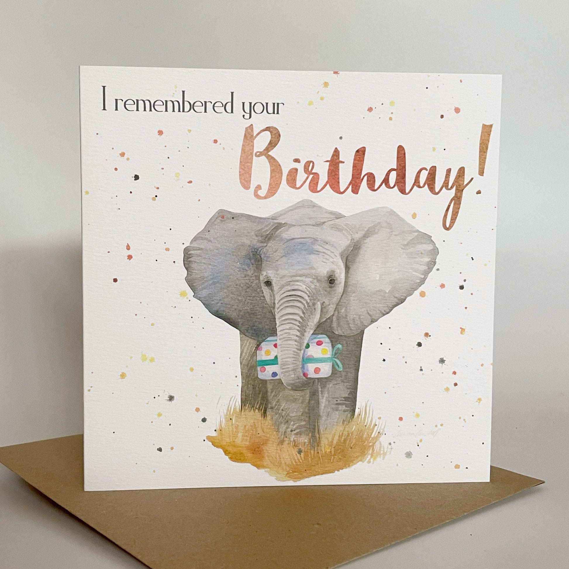 Elephant ‘I remembered your Birthday ’ Birthday Card