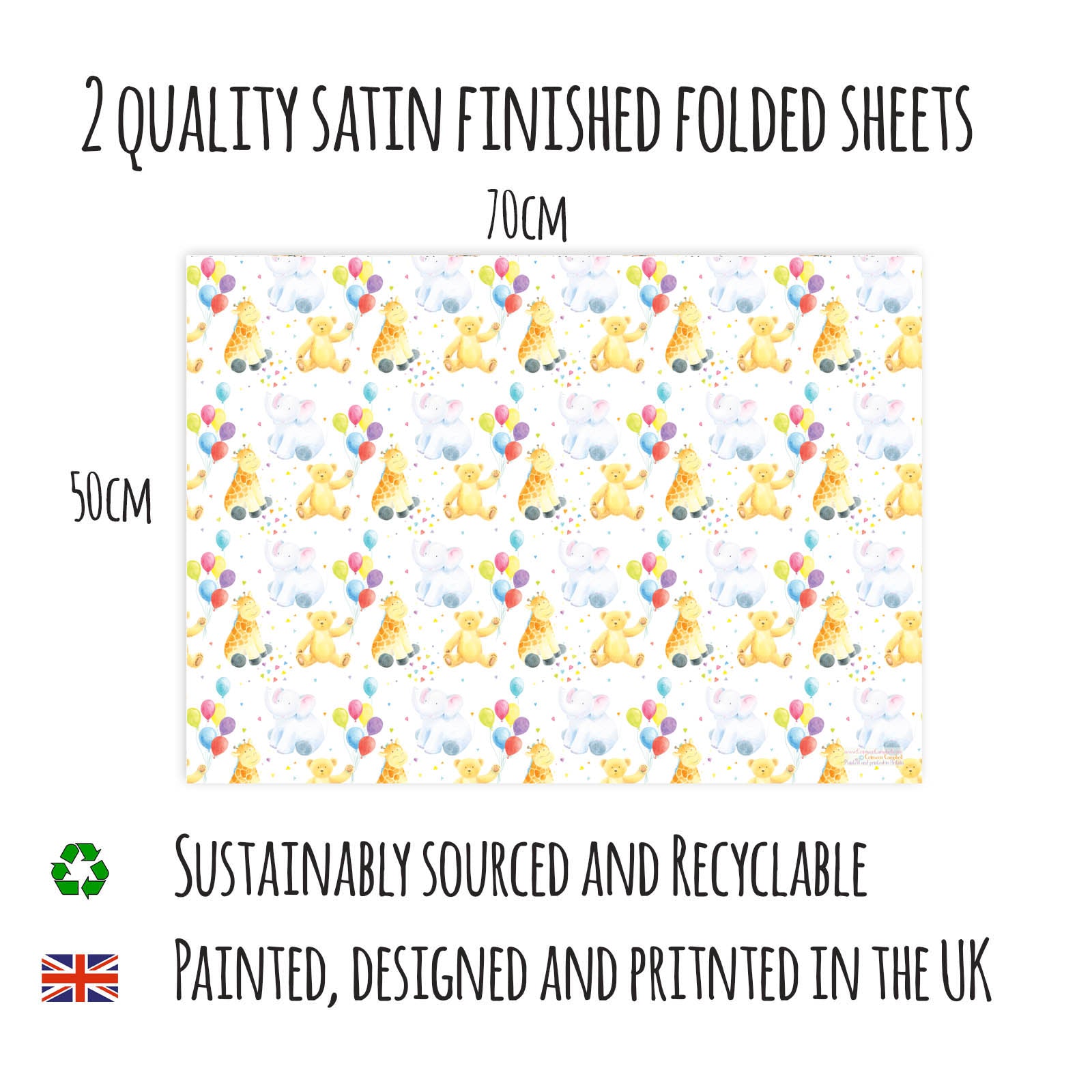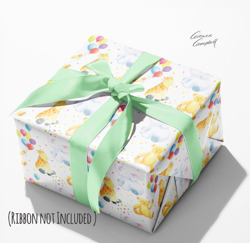 Elephant, Teddy and Giraffe Children's Wrapping Paper and Tags