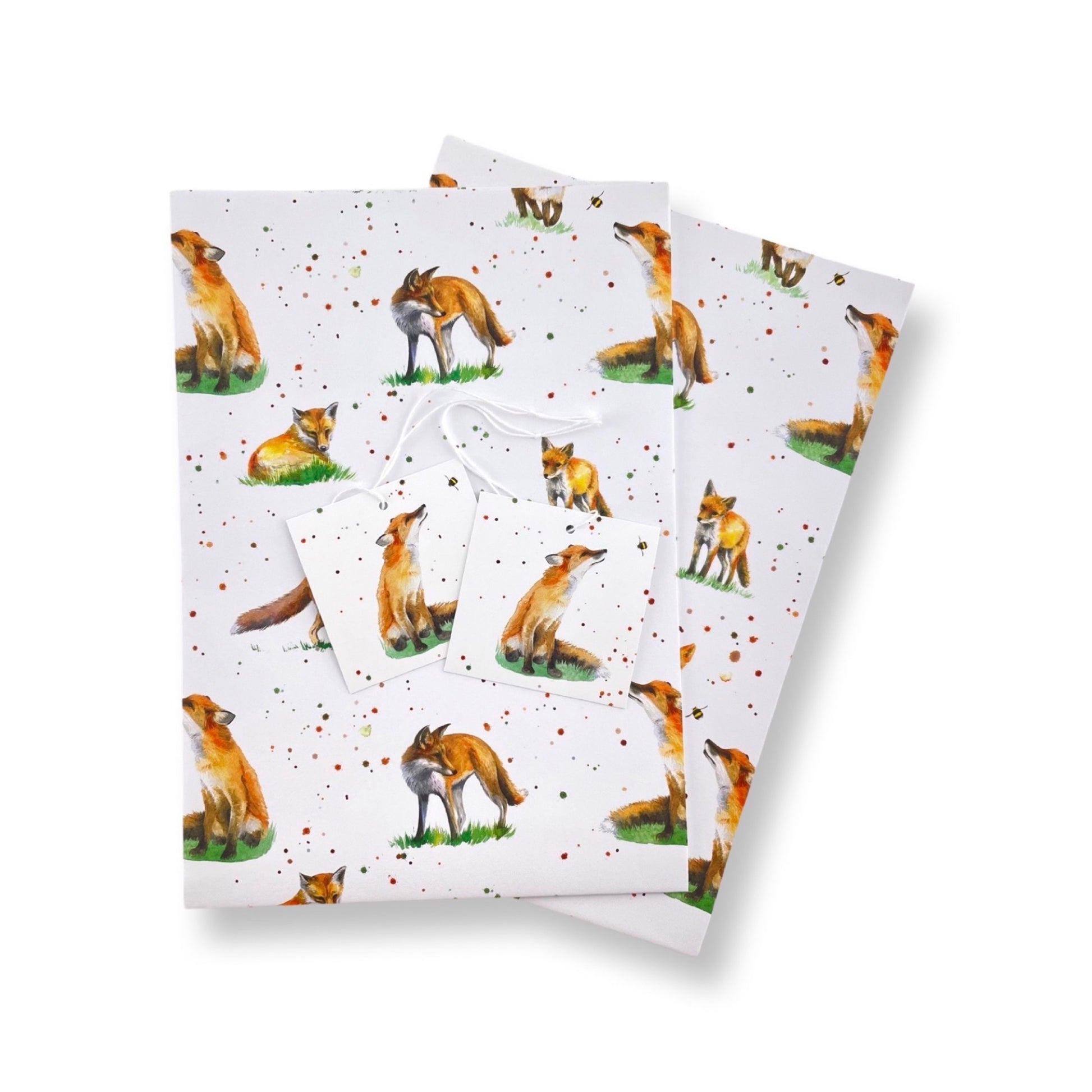 2 sheets of gift wrapping paper with matte finish, each 50cm x 70cm and folded for postage. Includes 2 co-ordinating gift tags.