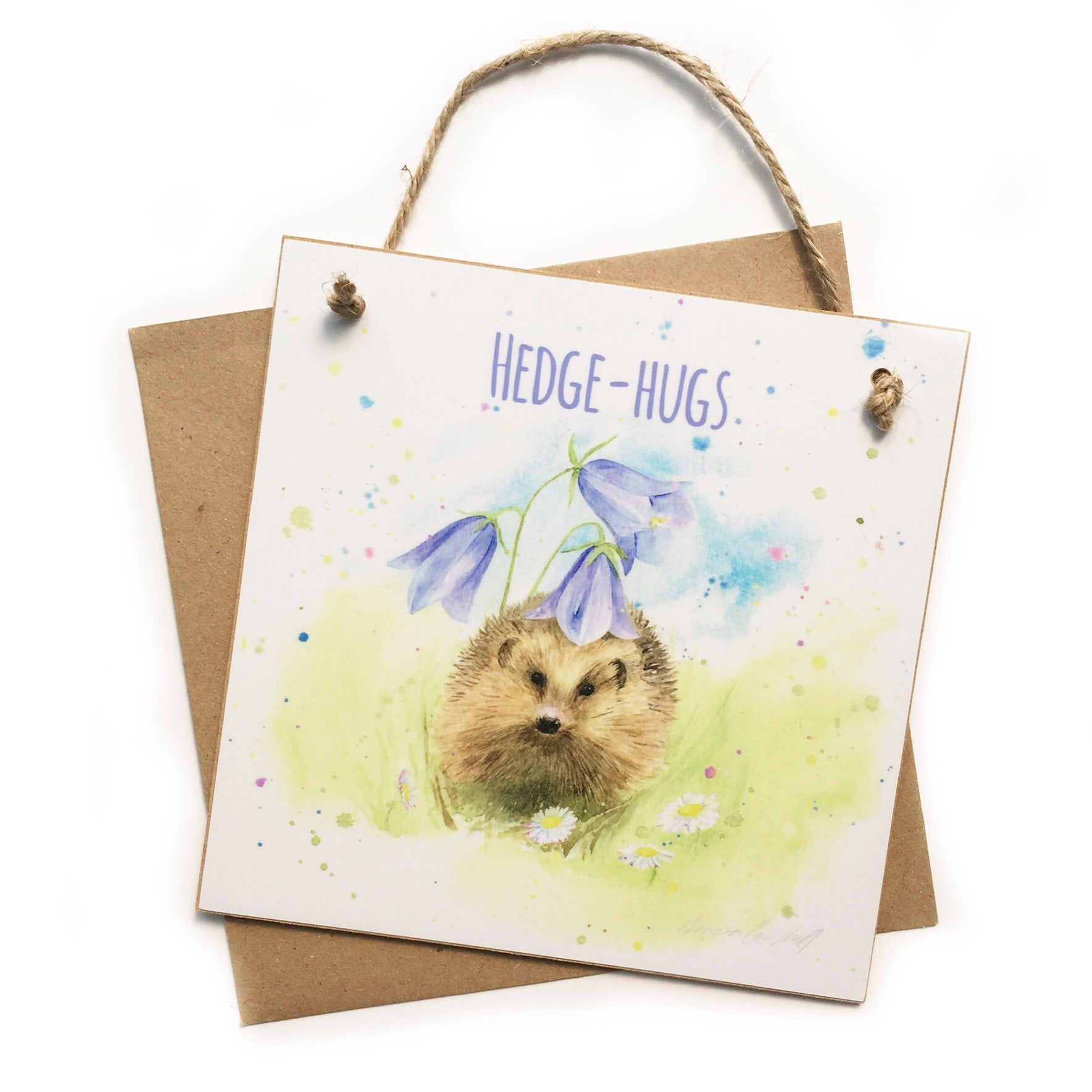 Cute Watercolour Hedgehog Hedge-hug Keepsake Plaque /Card