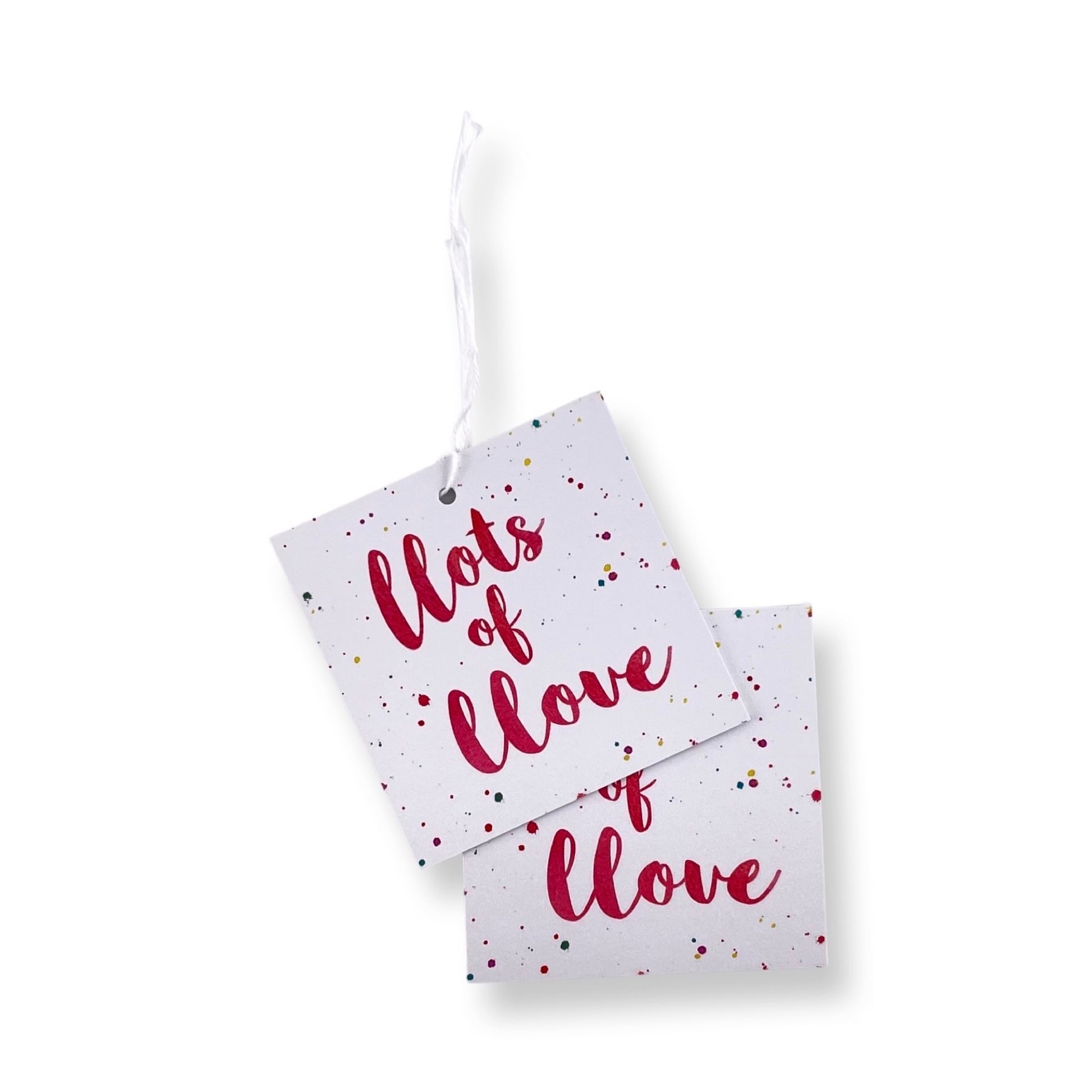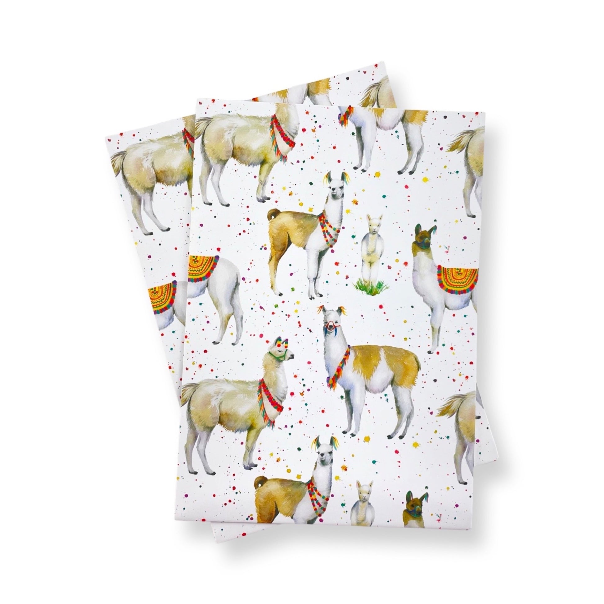 Llovely llama gift wrapping with "Llots of Llove" gift tags