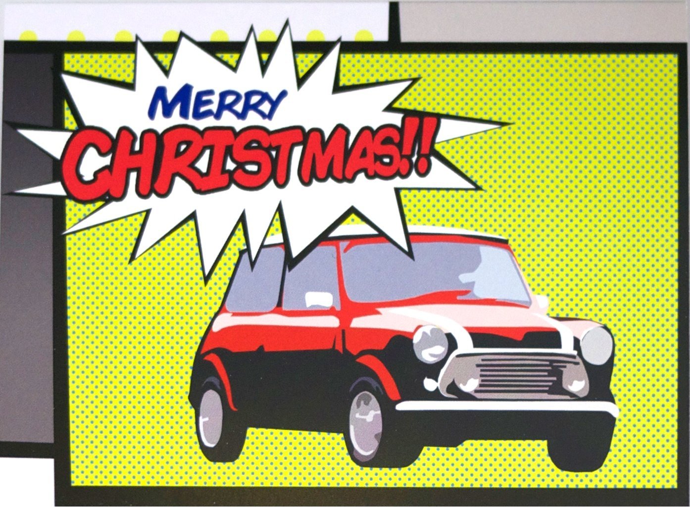 Mini Cooper classic car inspired pop art Christmas cards pack of 10 single design