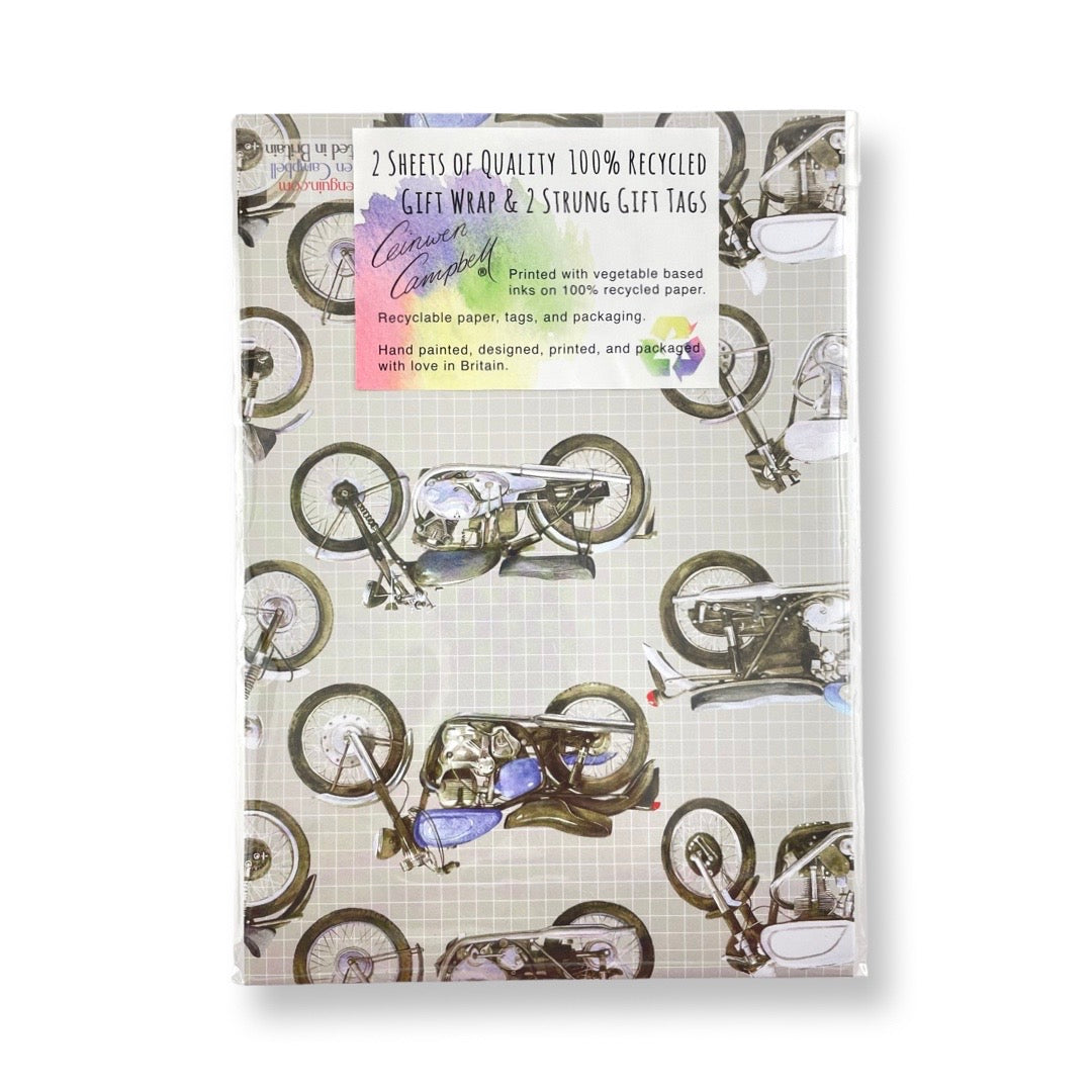 Motorbike Wrapping Paper and Tags