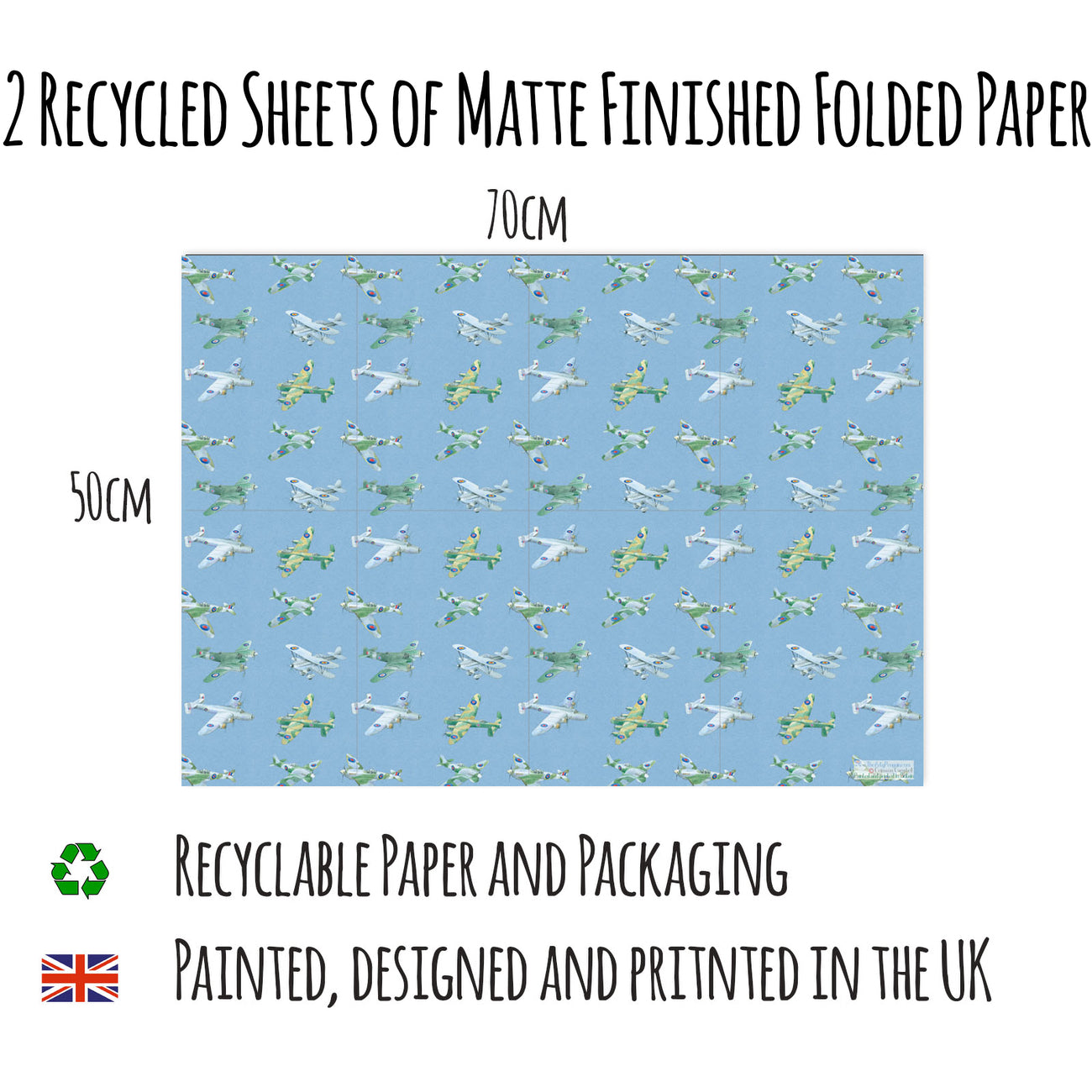 2 sheets of gift wrapping paper with matte finish, each 50cm x 70 cm and folded for postage. Includes 2 co-ordinating Airmail letter gift tags.